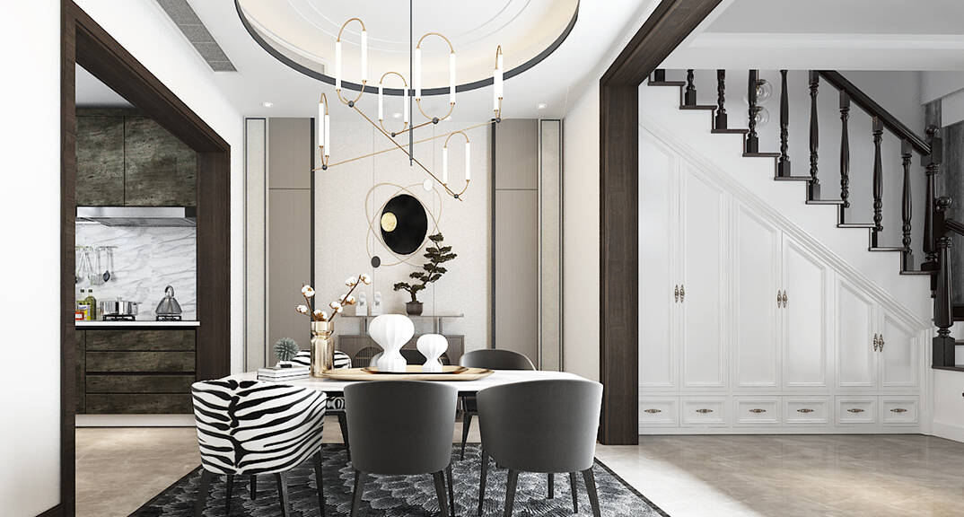 新中式風格的餐廳巧妙的融合古典元素與現代元素,不僅滿足了現代人對古典的追求,還緊跟現代潮流的步伐,去除繁復的裝飾,于細節處下筆,設計風格莊重而內斂,給人溫馨、明亮、潔凈的視覺感受。