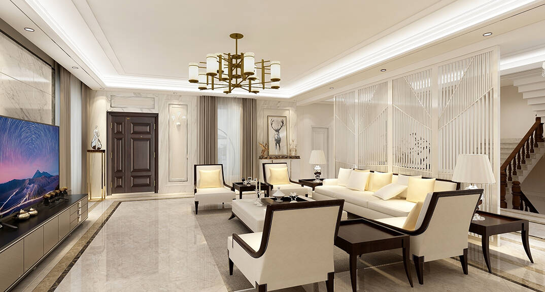 客廳明快鮮明,使用大量的石材以及部分木飾面裝潢使空間顯示出寬闊而富有歷史氣味,臥室布置較為溫馨,作為主人的私密空間,主要以功能性以及實用舒適為斟酌的重點