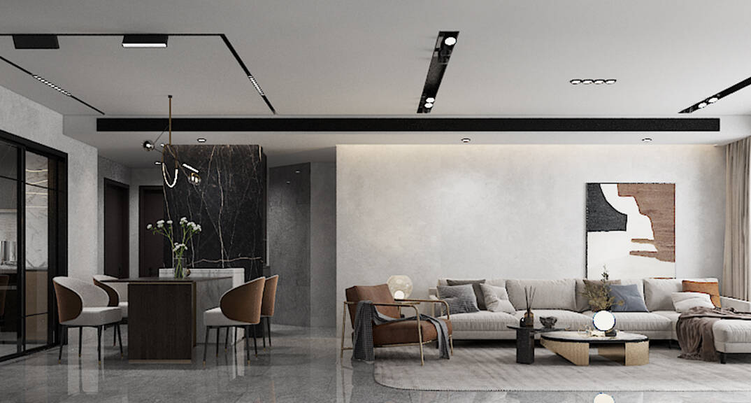 海爾世紀公館150㎡平層客餐廳現代極簡風格裝修案例效果圖