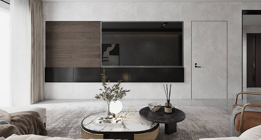 海爾世紀公館150㎡平層客廳現代極簡風格裝修案例效果圖