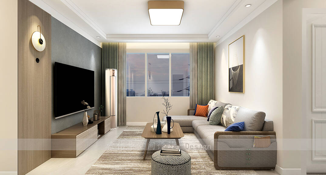 軟裝家具在色彩及材質上為設計加分,而定制柜子既美觀又可以增加收納空間,整體裝飾性與實用性兼得。客廳舒適而放松,設計師為背景墻披上溫和的色調,配合精心選擇的裝飾掛畫,整體和諧地衍生出一種高級感。