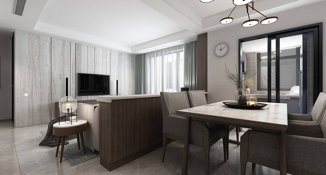 海悅中心155㎡三室兩廳客餐廳現代風格裝修案例效果圖