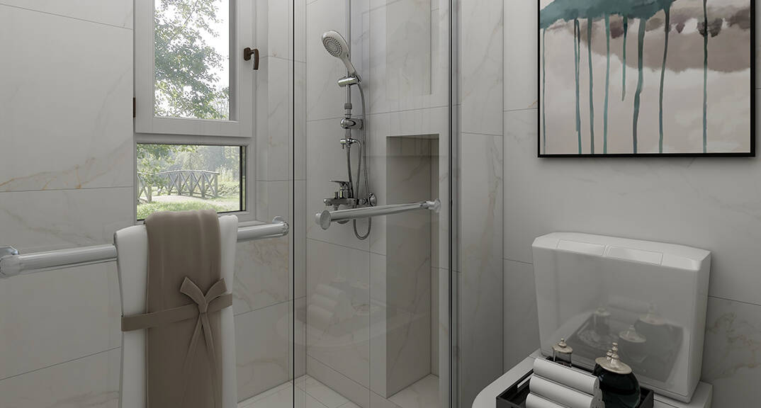 魯商藍岸新城127m2三室一廳衛(wèi)生間現(xiàn)代風(fēng)格裝修案例效果圖