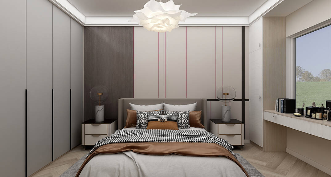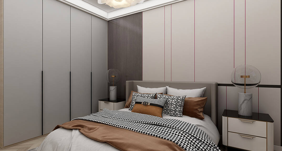 魯商藍岸新城127m2三室一廳主臥現(xiàn)代風(fēng)格裝修案例效果圖