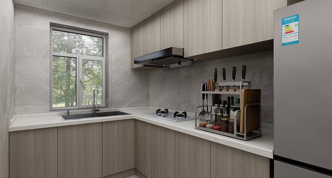 魯商藍岸新城127m2三室一廳廚房現(xiàn)代風(fēng)格裝修案例效果圖