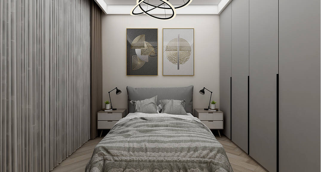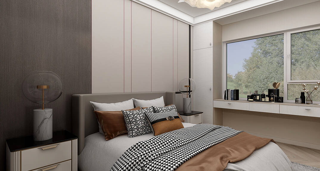 魯商藍岸新城127m2三室一廳次臥現(xiàn)代風(fēng)格裝修案例效果圖