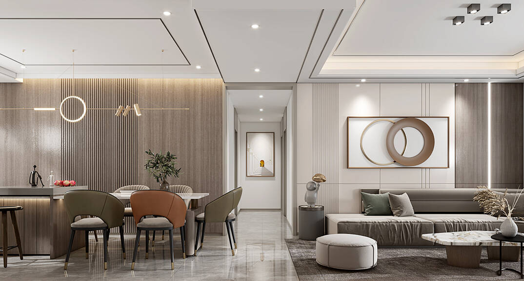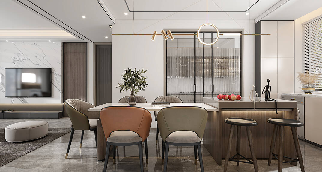 溫莎郡135㎡三室一廳客餐廳現(xiàn)代簡約風(fēng)格裝修案例效果圖