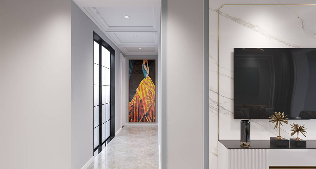 膠州機(jī)場(chǎng)公寓93㎡二室一廳過道走廊輕奢風(fēng)格裝修案例效果圖