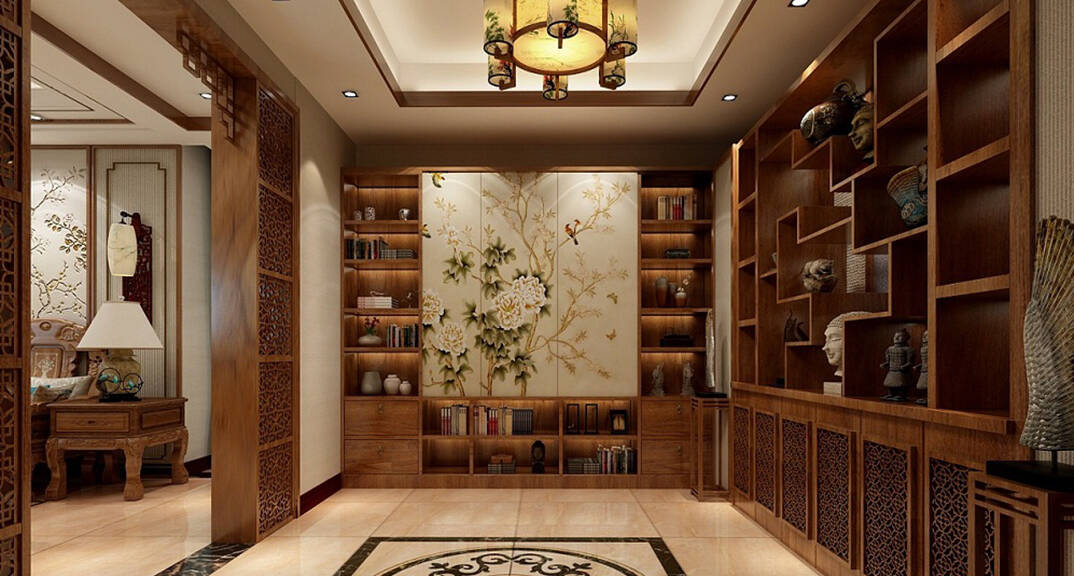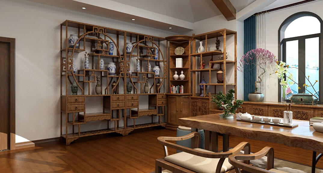 海川泓久山墅635㎡別墅收藏室新中式風格裝修案例效果圖