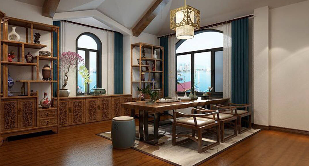 海川泓久山墅635㎡別墅茶室新中式風格裝修案例效果圖