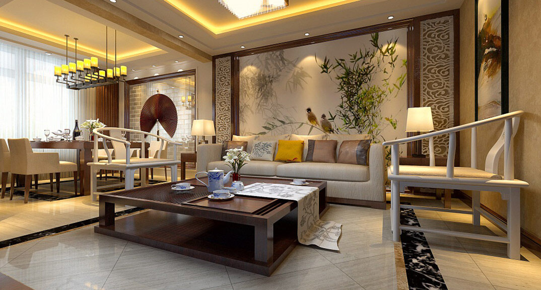 百通尚風尚水160㎡二室二廳客廳沙發新中式風格裝修案例效果圖