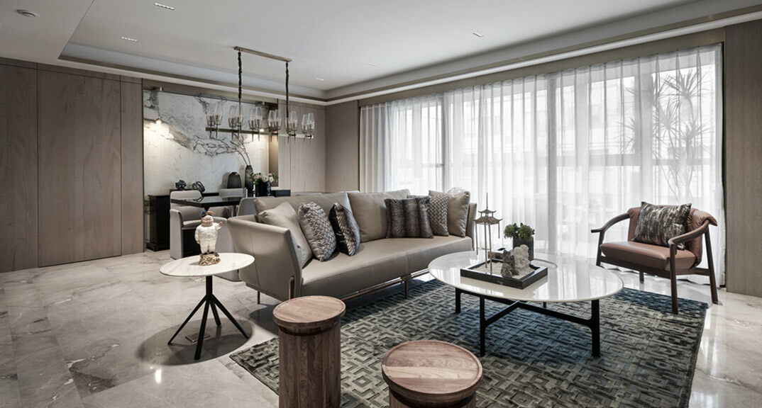天一仁和瓏樾海142㎡別墅中疊客廳輕奢風格裝修研發效果圖