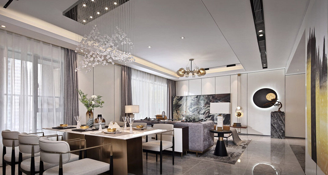 天一仁和瓏樾海142㎡別墅中疊餐廳輕奢風格裝修研發效果圖