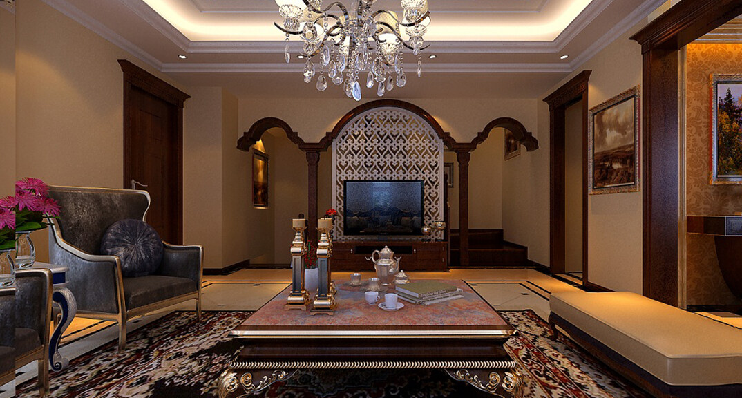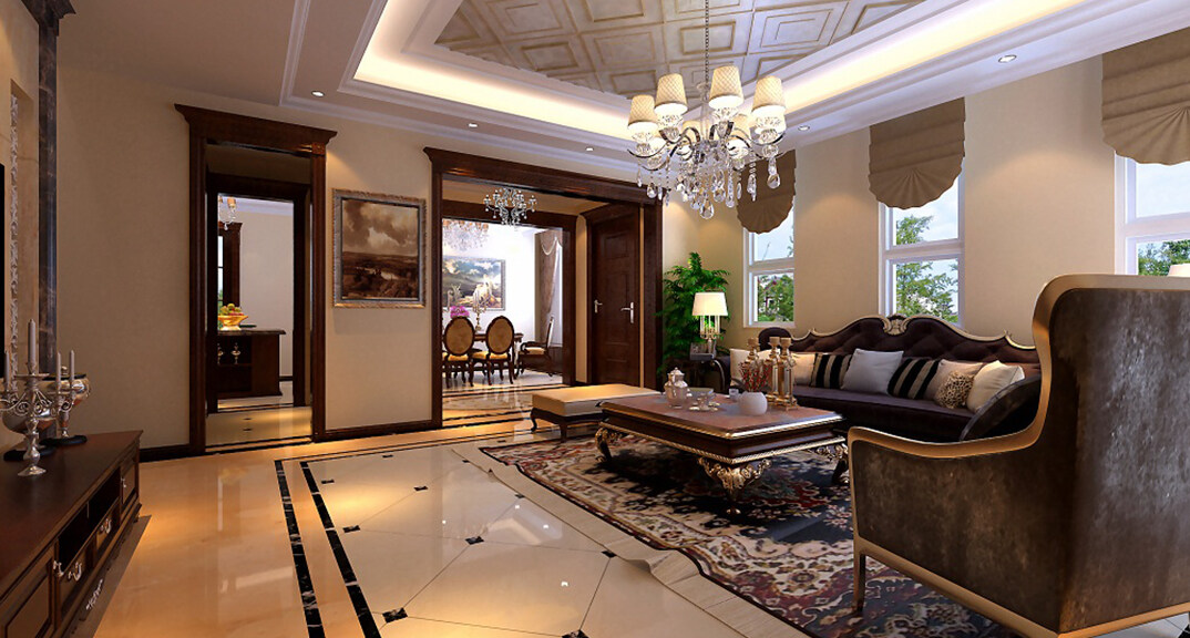 青特花溪地164㎡別墅客廳簡歐風格裝修案例