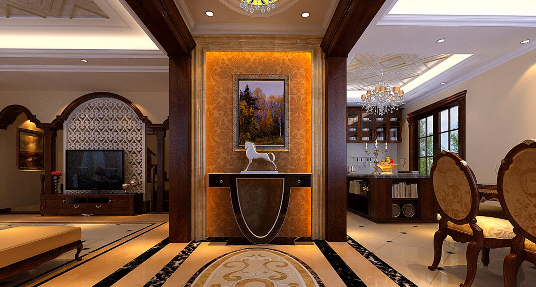 青特花溪地164㎡別墅玄關簡歐風格裝修案例