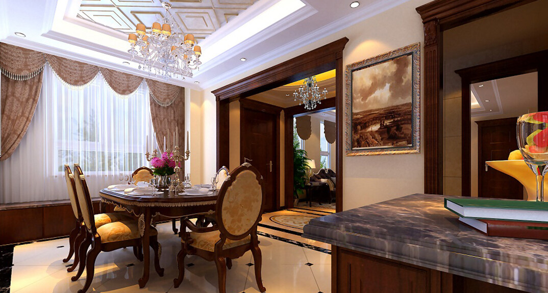 青特花溪地164㎡別墅餐廳簡歐風格裝修案例