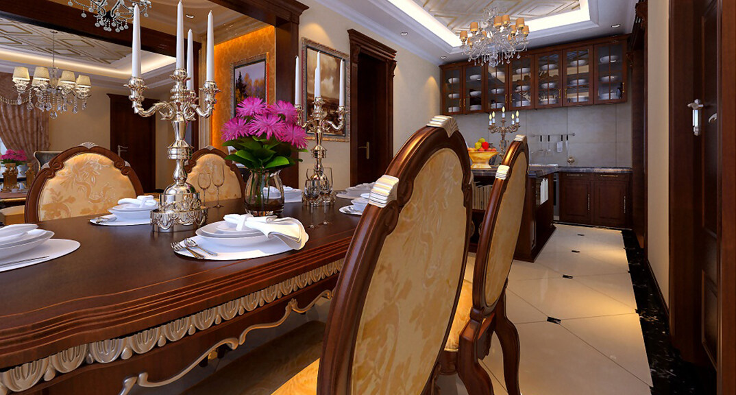 青特花溪地164㎡別墅餐廳廚房簡歐風格裝修案例