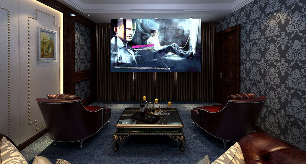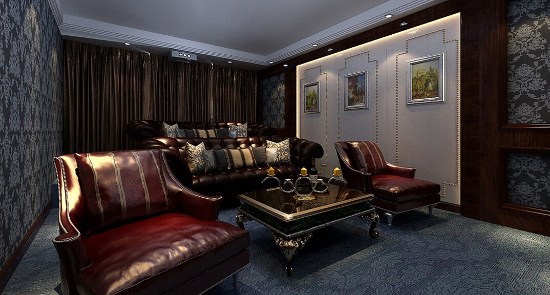 青特花溪地164㎡別墅視聽間簡歐風格裝修案例