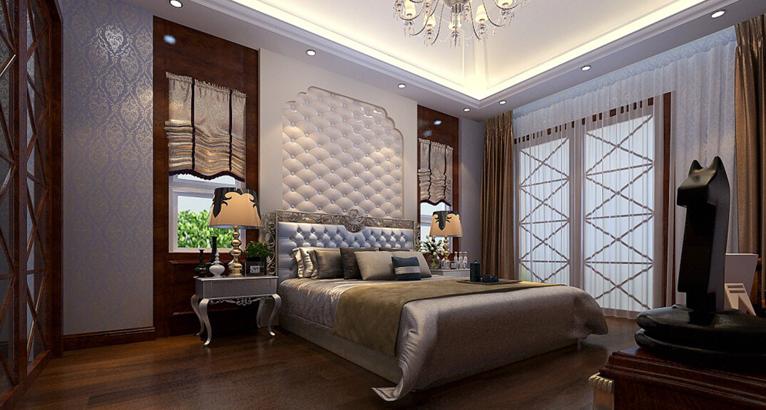 青特花溪地164㎡別墅主臥簡歐風格裝修案例