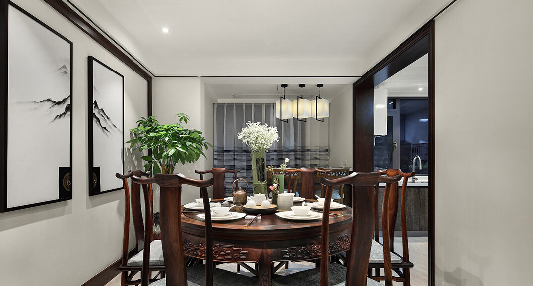 桃李芳菲4室2廳1廚3衛(wèi)181㎡餐廳中式古典風(fēng)格裝修效果圖