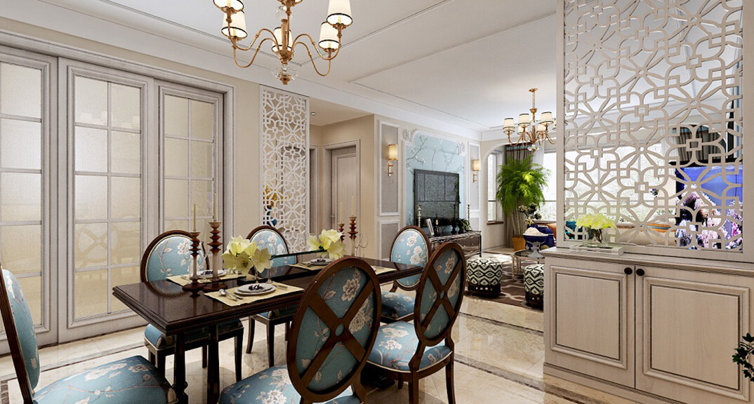 憑海臨風142㎡三室二廳客餐廳美式風格裝修案例效果圖