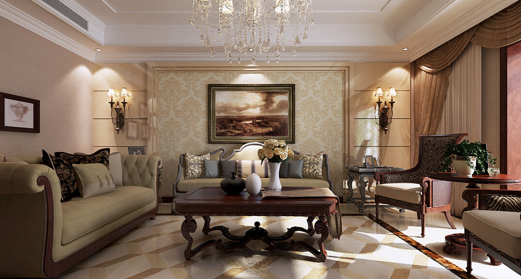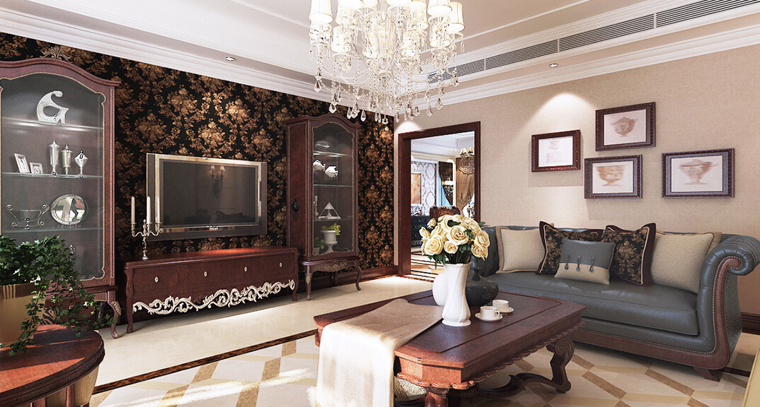麥島金岸198㎡四室兩廳客廳新中式風格裝修案例效果圖
