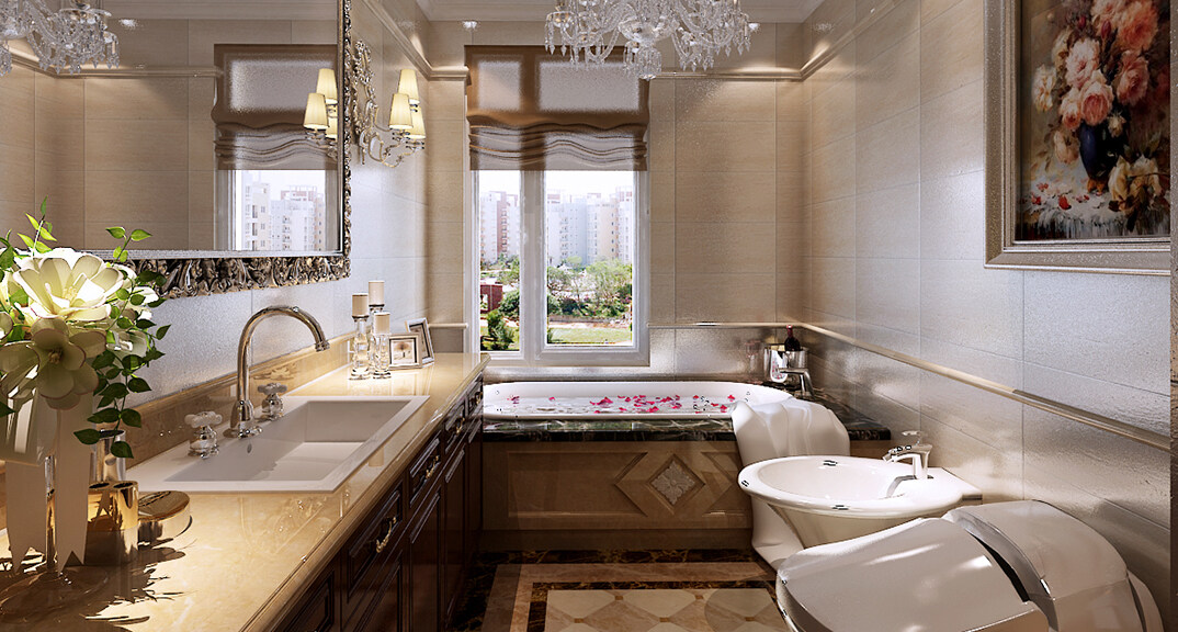 麥島金岸198㎡四室兩廳衛生間新中式風格裝修案例效果圖