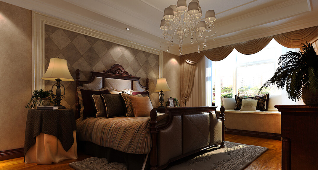 麥島金岸198㎡四室兩廳次臥新中式風格裝修案例效果圖