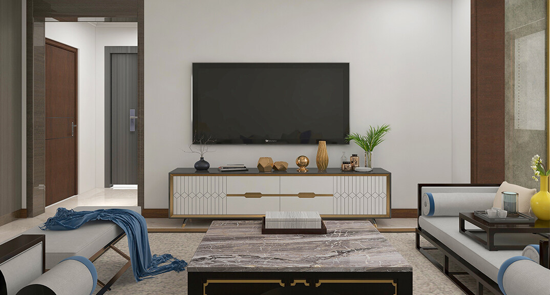 青安·海悅居86㎡二室二廳客廳電視現代簡約風格裝修案例效果圖
