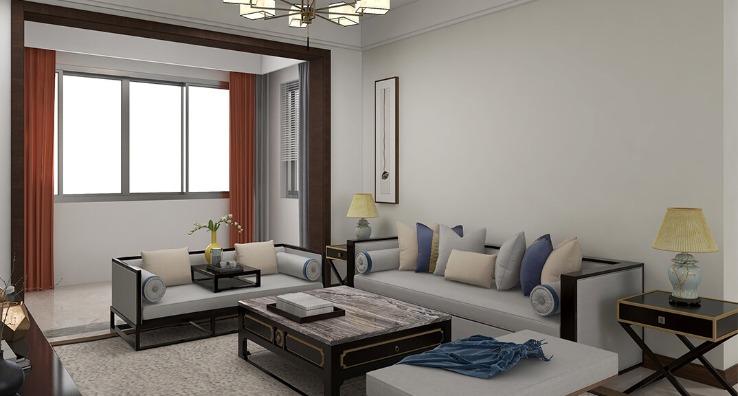 青安·海悅居86㎡二室二廳客廳沙發現代簡約風格裝修案例效果圖