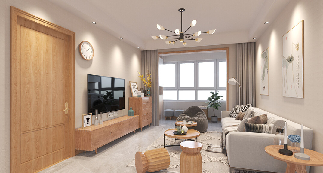 青鋼小鎮120㎡三室一廳客廳現代風格裝修案例效果圖