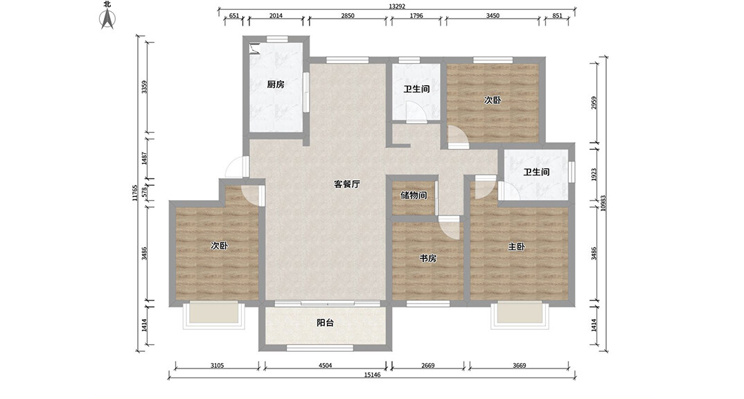 桂花園132㎡三室兩廳陽(yáng)臺(tái)現(xiàn)代簡(jiǎn)約風(fēng)格裝修案例效果圖