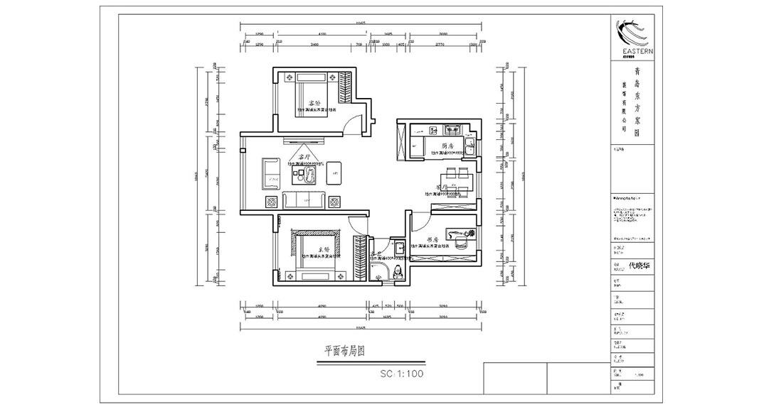 青鋼小鎮100㎡三室兩廳戶型平面布局圖