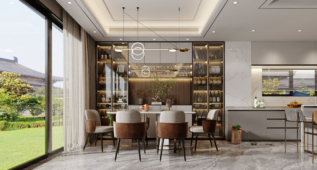 青島小鎮175㎡別墅下疊餐廳輕奢極簡風格裝修案例效果圖