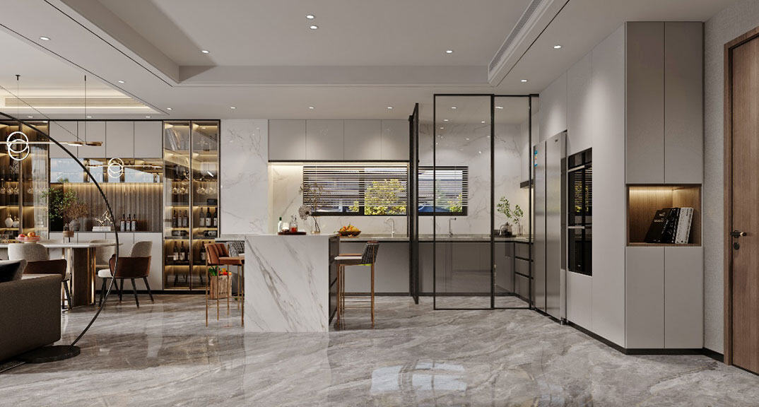青島小鎮175㎡別墅下疊廚房輕奢極簡風格裝修案例效果圖