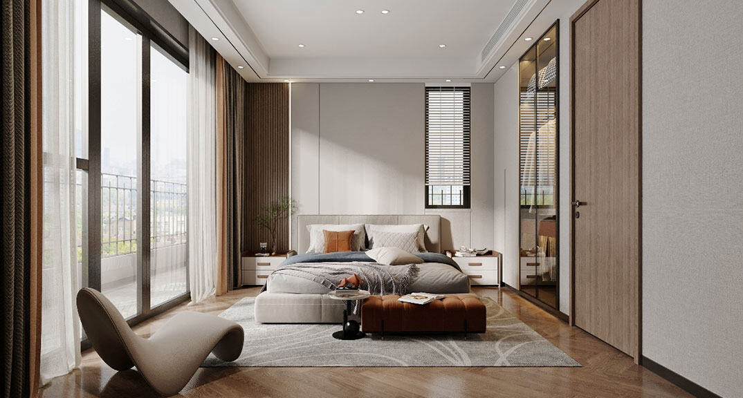 青島小鎮175㎡別墅下疊臥室輕奢極簡風格裝修案例效果圖