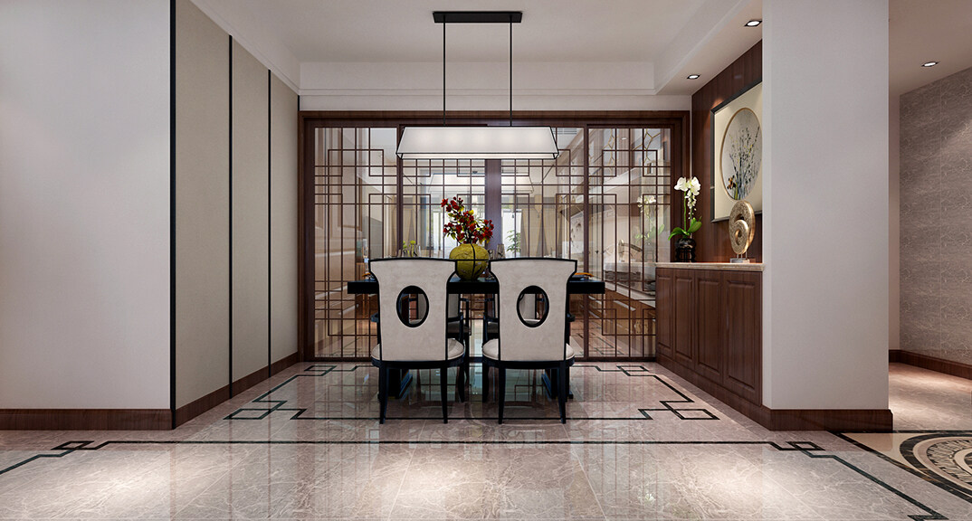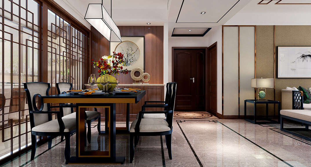 安泰悅湖灣138㎡三室兩廳餐廳新中式風格裝修案例效果圖