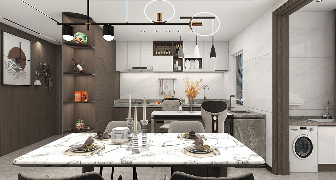 依云四季108㎡三室兩廳餐廳現代風格戶型研發案例效果圖