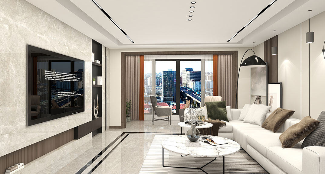 依云四季108㎡三室兩廳客廳現代風格戶型研發案例效果圖