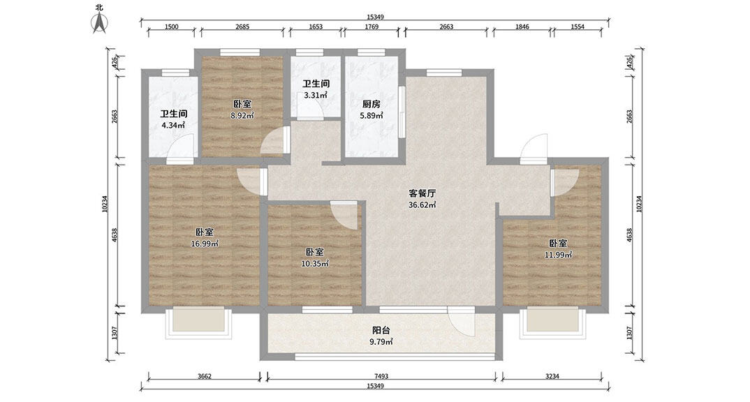 依云四季118㎡三室兩廳次臥現(xiàn)代簡約風格戶型研發(fā)案例效果圖