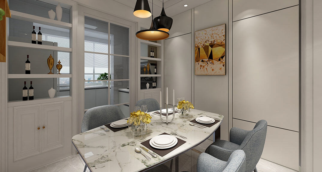 依云四季118㎡三室兩廳餐廳現(xiàn)代簡約風格戶型研發(fā)案例效果圖