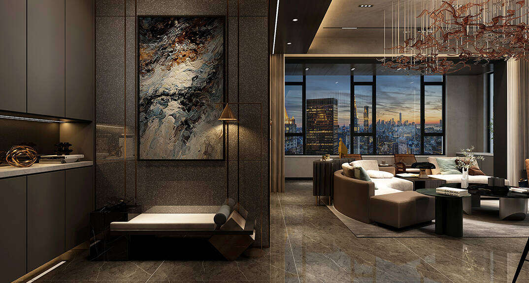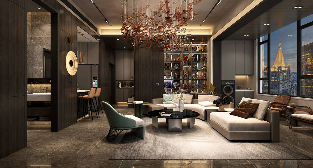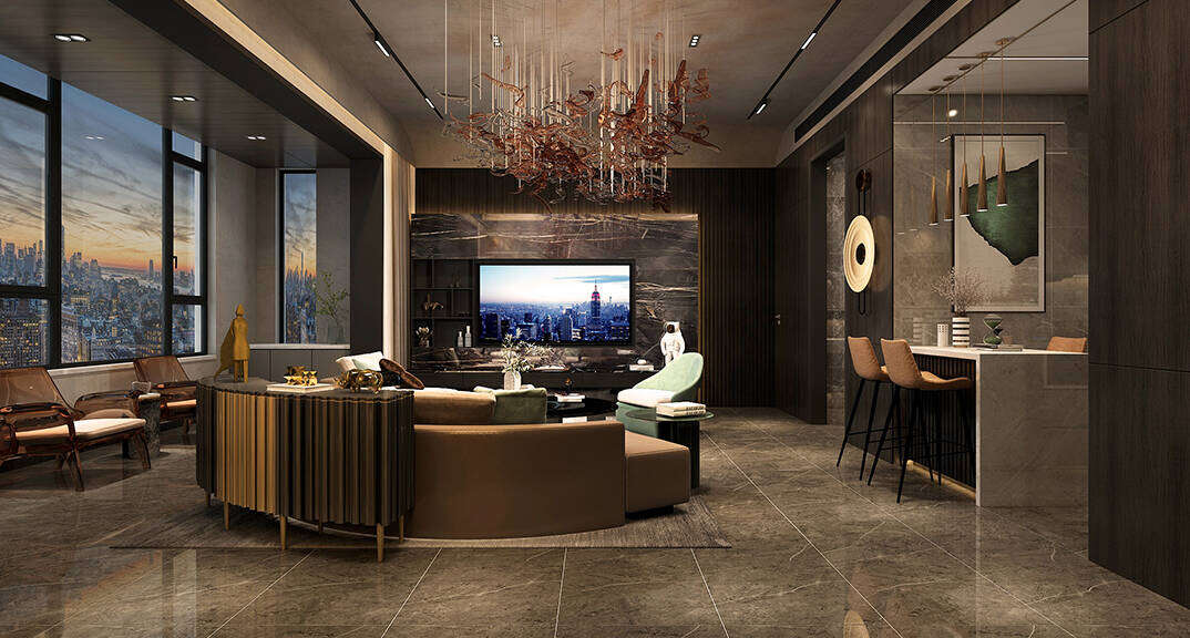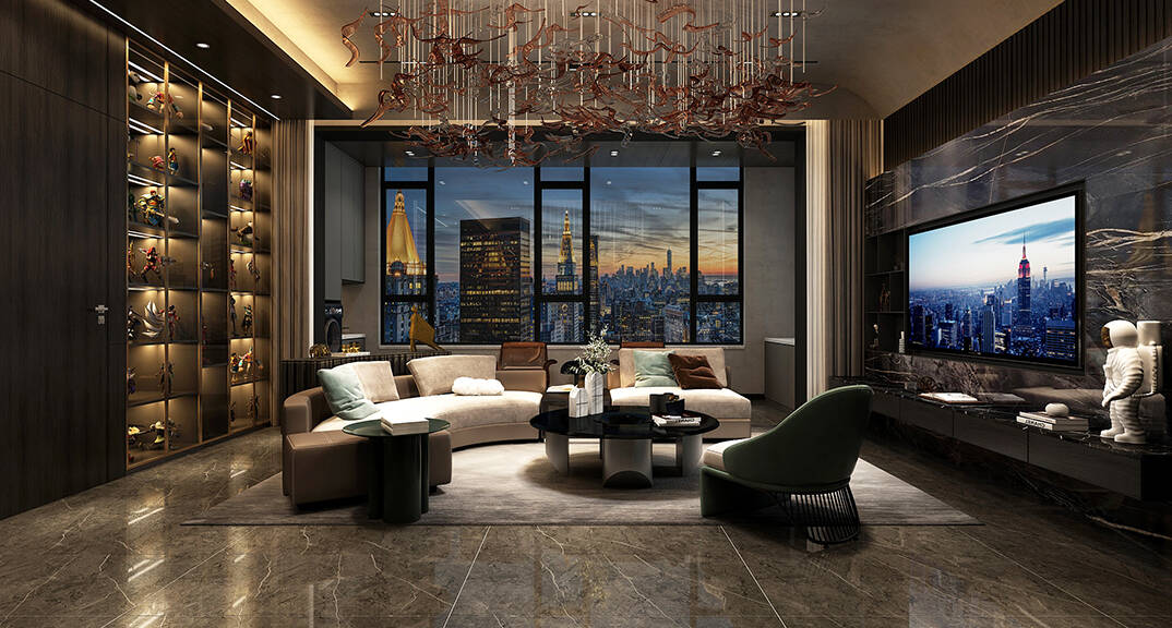 海信積米灣145m2三室兩廳客廳輕奢風格裝修案例效果圖