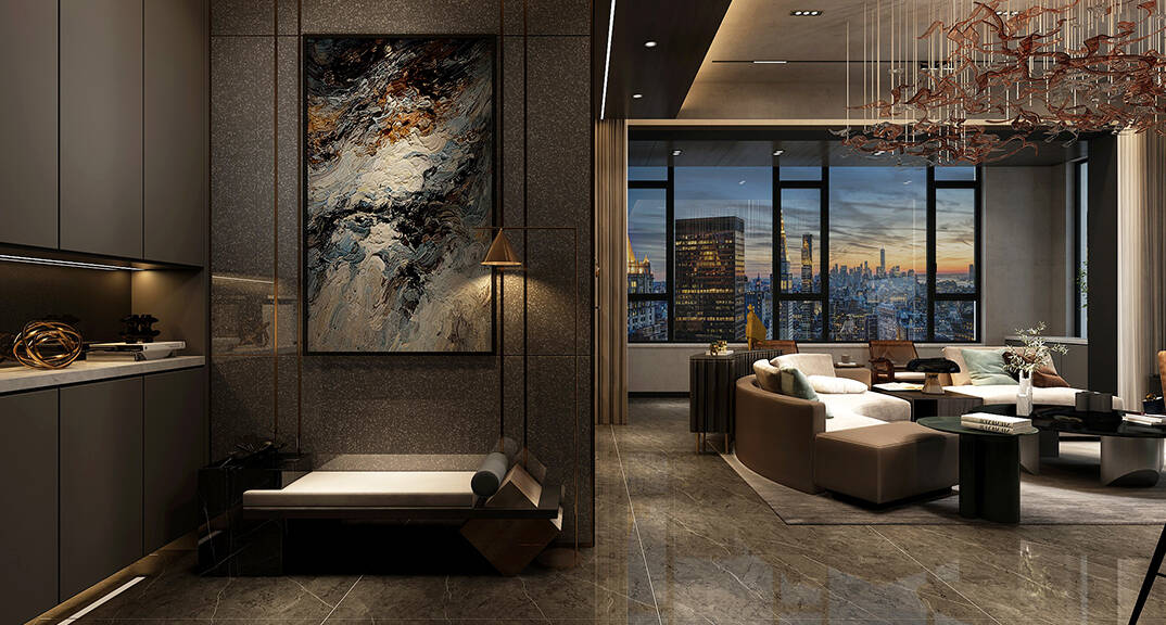 海信積米灣145m2三室兩廳玄關輕奢風格裝修案例效果圖