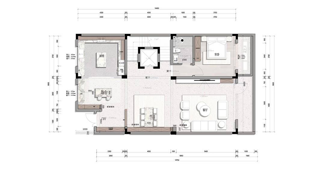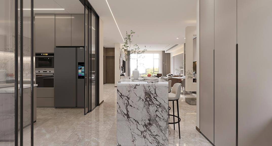 紅島府260㎡別墅吧臺廚房現代極簡風格裝修案例效果圖