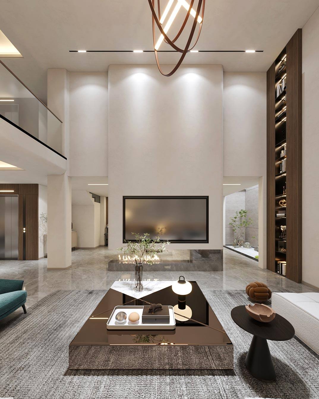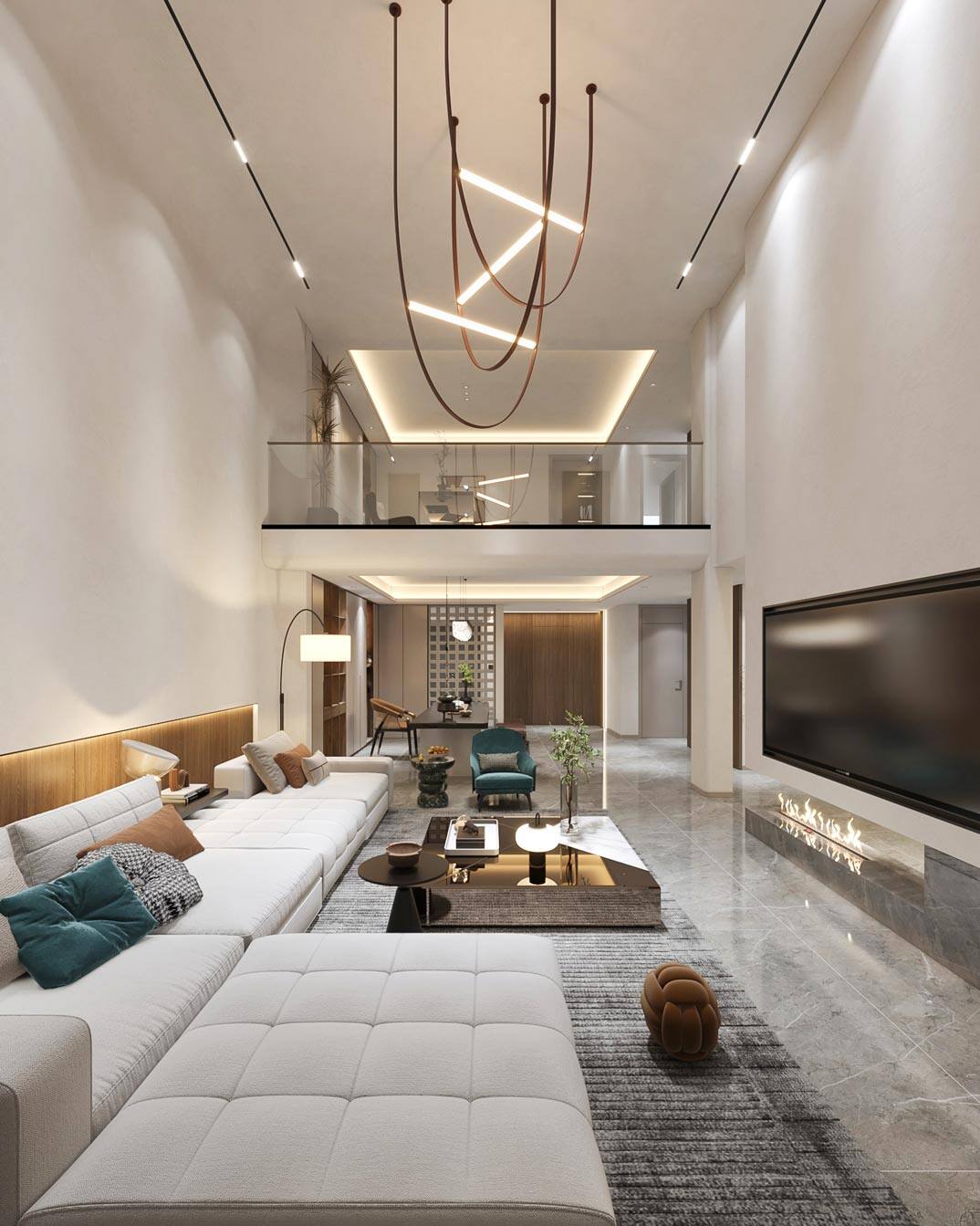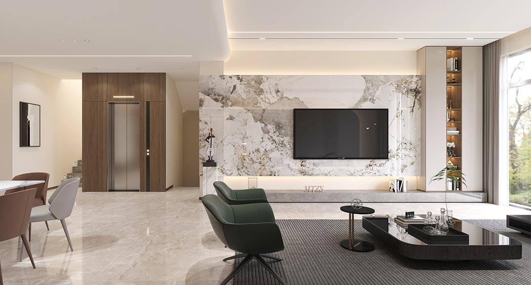 紅島府260㎡別墅客廳現代極簡風格裝修案例效果圖