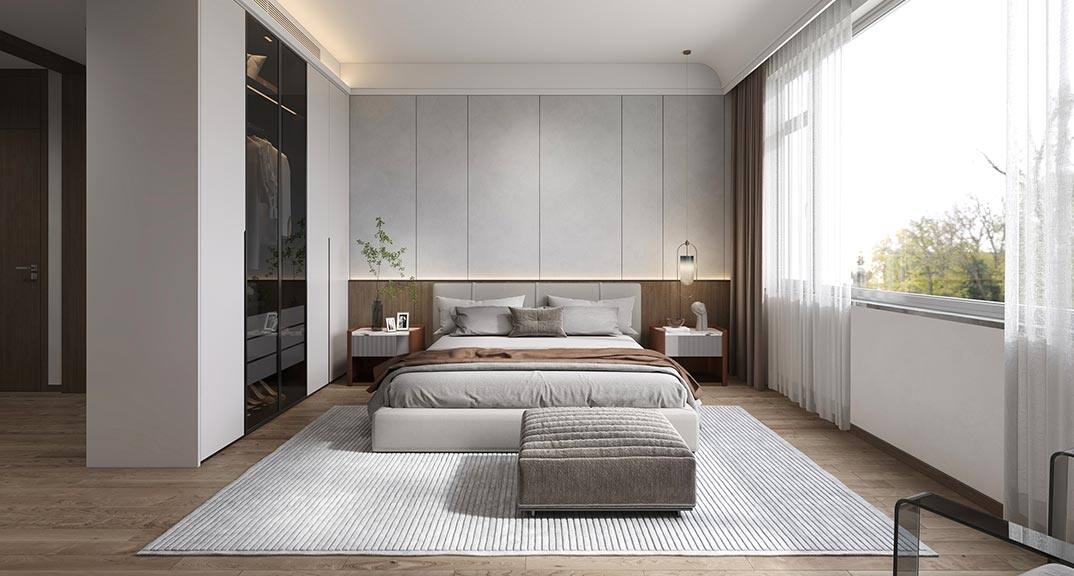 紅島府260㎡別墅臥室現代極簡風格裝修案例效果圖