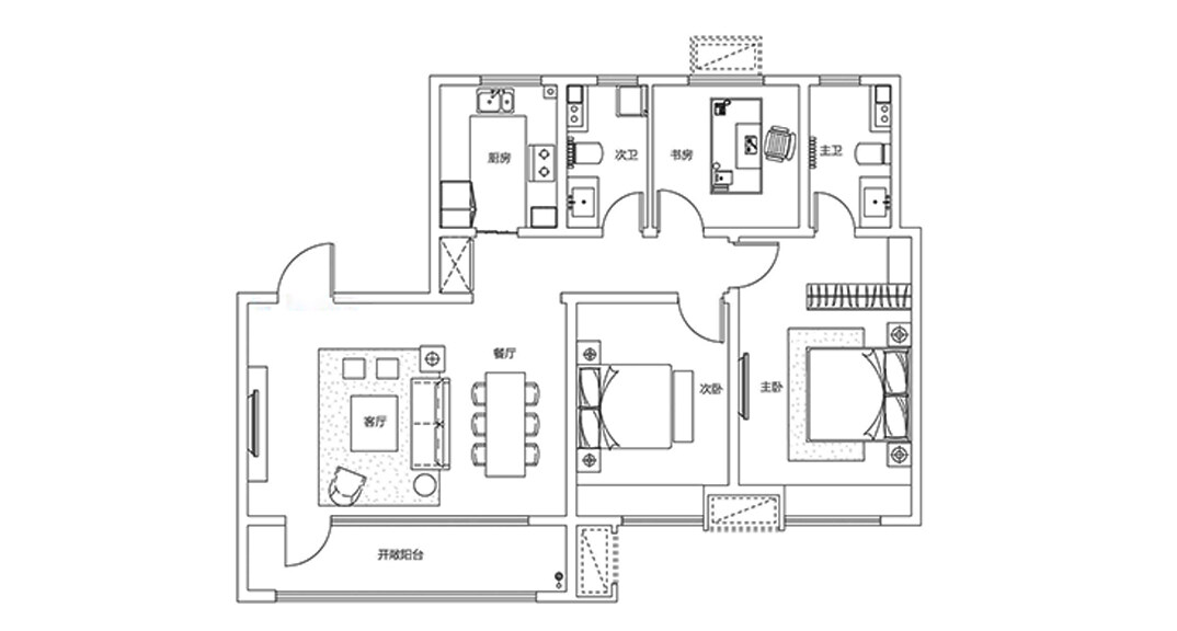 青特星城142㎡三室兩廳次臥現代風格裝修案例效果圖