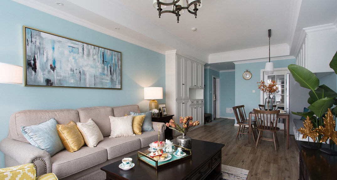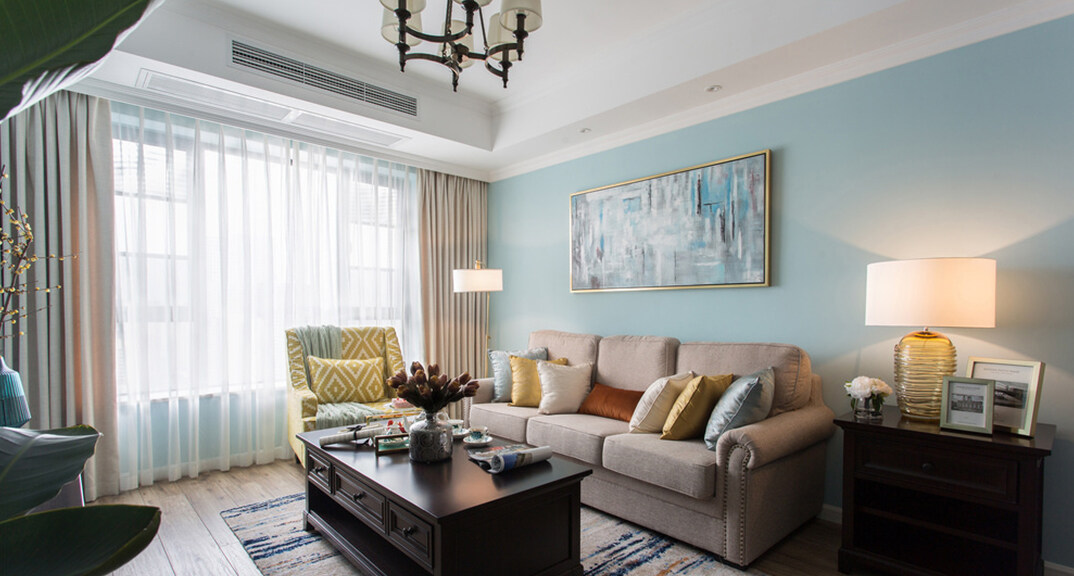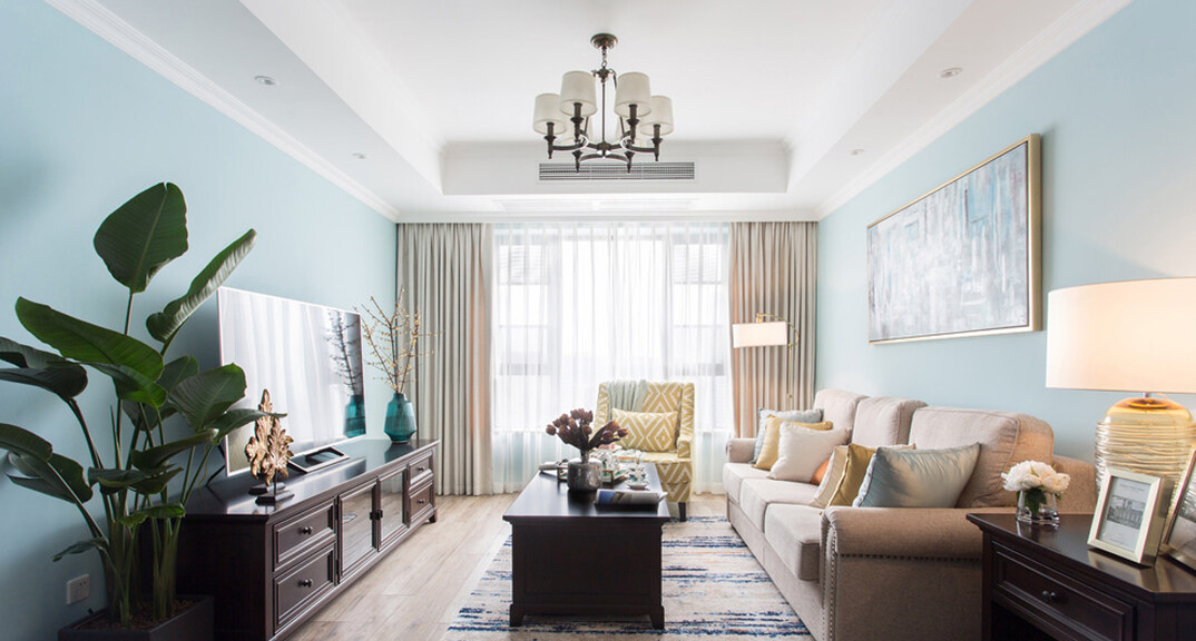 青特星城119㎡三室兩廳客廳美式風格裝修案例效果圖