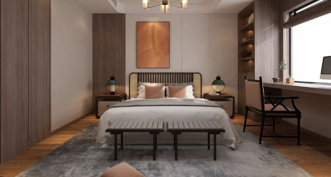 山水龍庭300㎡別墅次臥新中式風格裝修案例效果圖