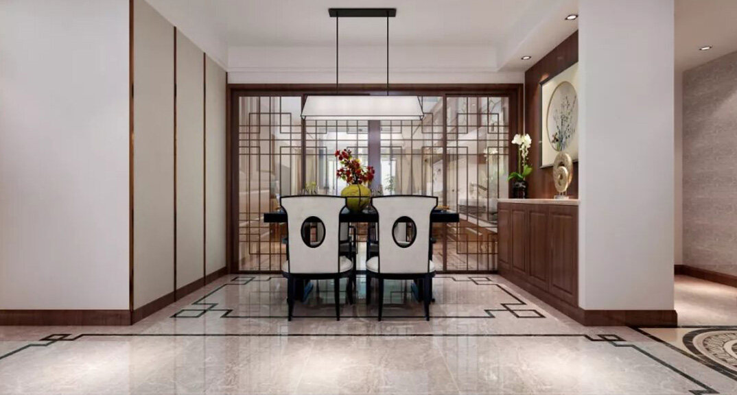 悅湖灣135㎡三室兩廳客餐廳新中式風格裝修案例效果圖